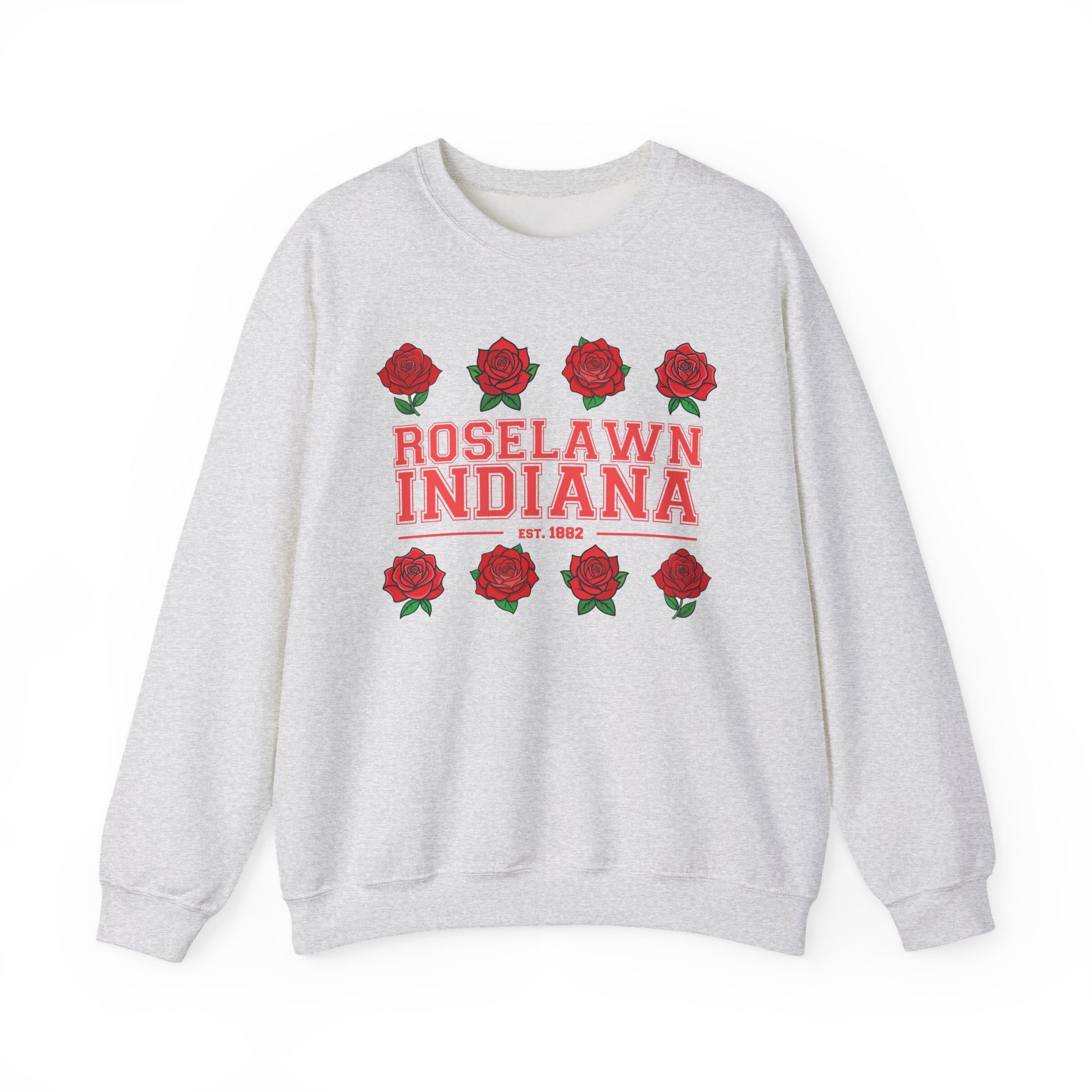 Roselawn, Indiana Rose Crewneck Sweatshirt | Cozy Sweatshirt, Floral Design, Town Pride